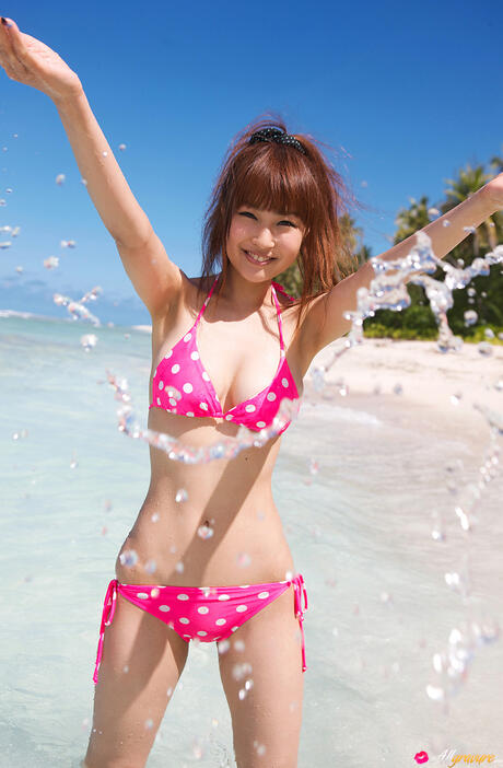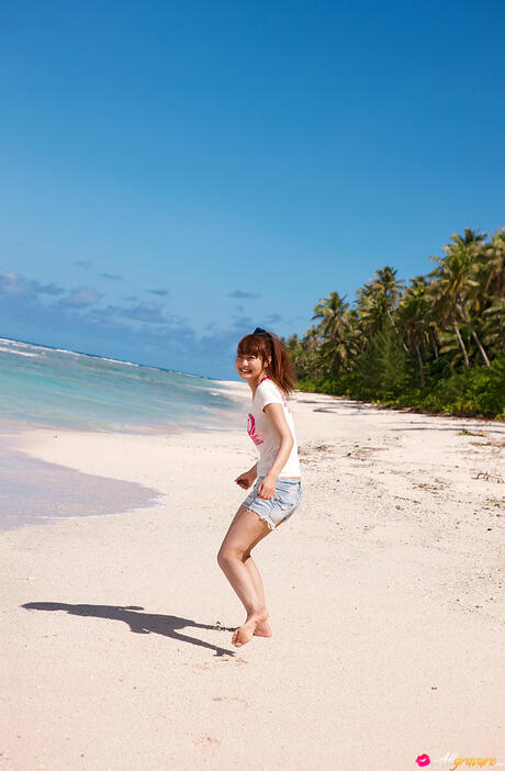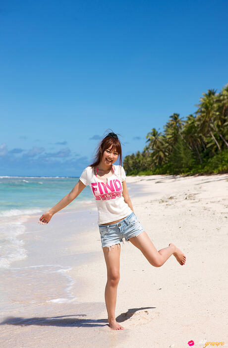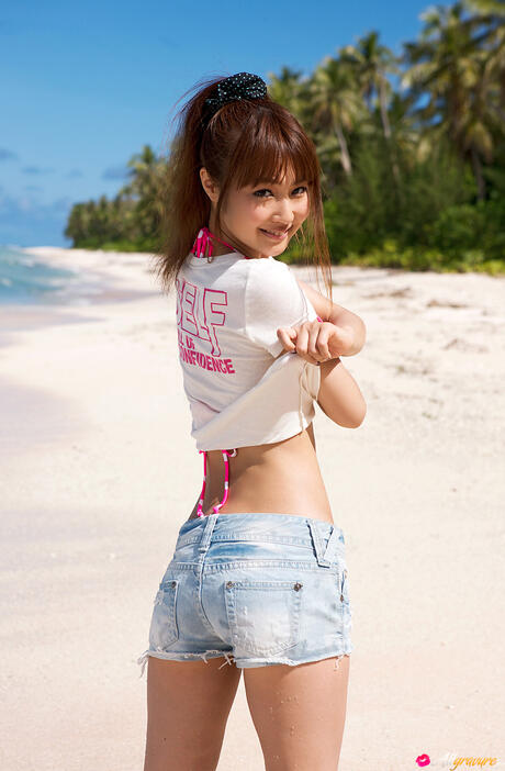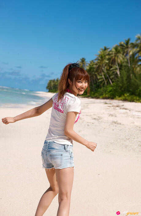 All Gravure: Platinum Japanese babe Misaki Nito strips and presents her big butt on the beach