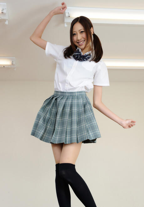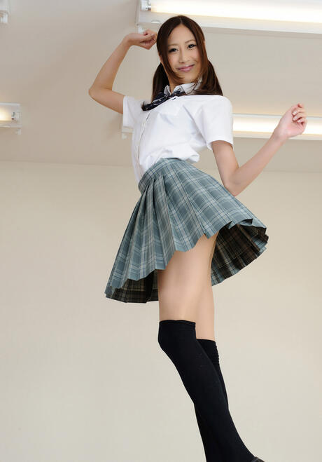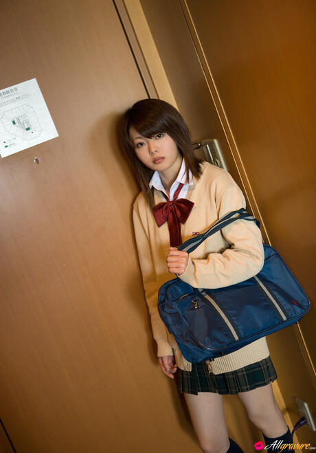All Gravure: Platinum schoolgirl Miki Sakurai strips and unveils her hot butt in a solo