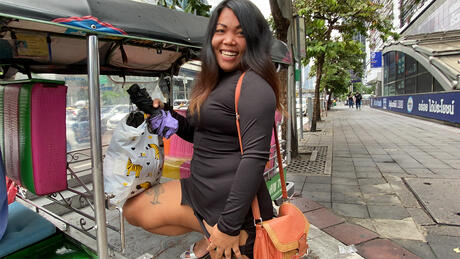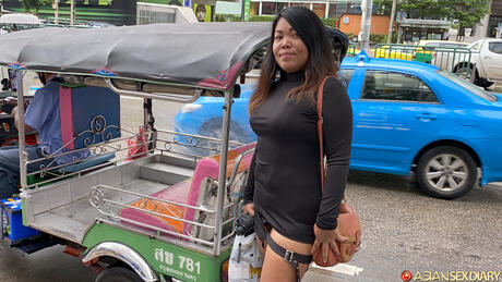 Asian Sex Diary: Platinum Thai cougar Oam F strips and gets her pussy licked before fucking