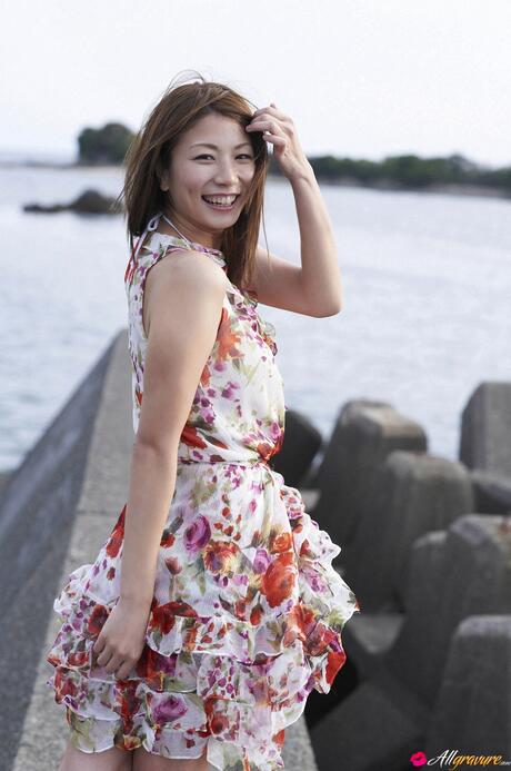 All Gravure: Pornstar Ai Aoki presents her sexy booty and goes naked on the fence