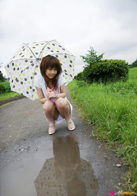 All Gravure: Pure teen Sakurako shows her pink panties and poses in the rain