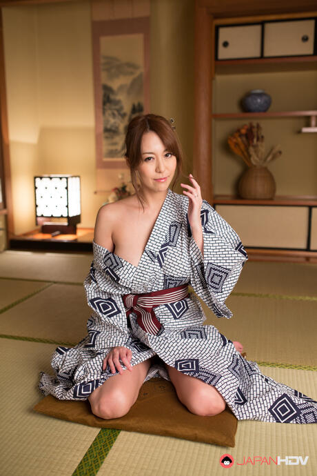 Japan HDV: Sexy Asian babe Akari Asayiri strips and toys her pussy in a solo on the floor