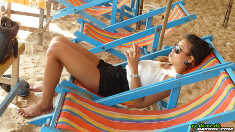 Tuk Tuk Patrol: Sexy Asian babe Cartoon shows her big butt and poses in a bikini on the beach