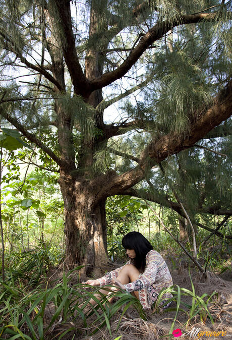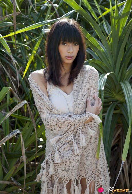 All Gravure: Sexy Asian babe Hana Haruna strips and exposes herself in the forest