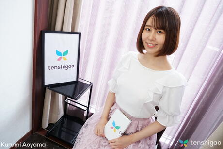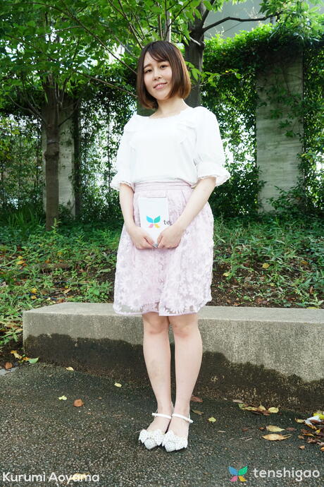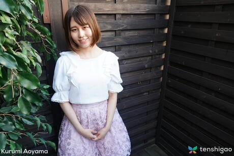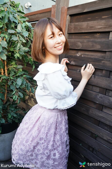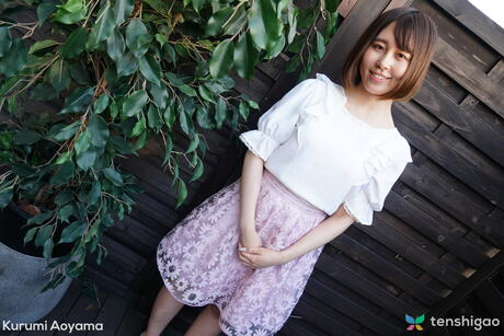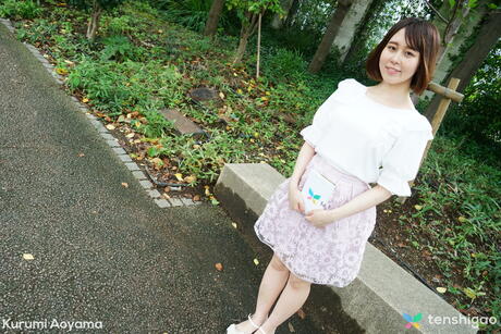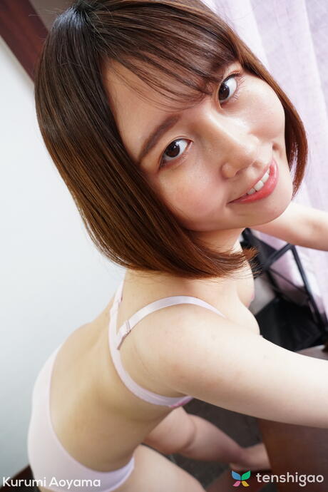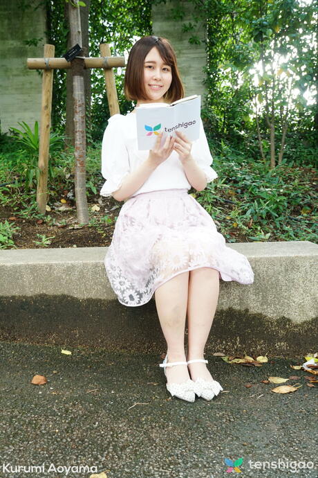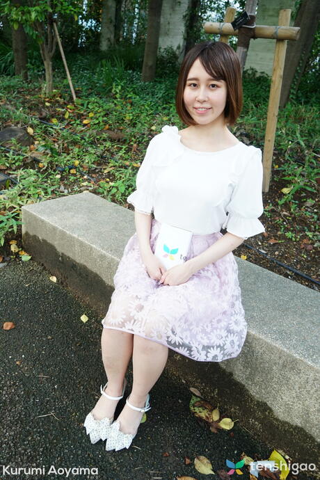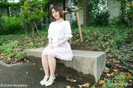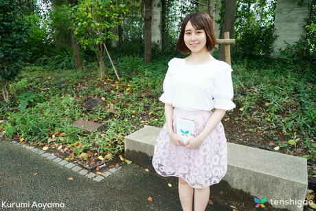 Tenshigao: Sexy Asian babe Kurumi Aoyama strips and rubs wet cunt in the garden
