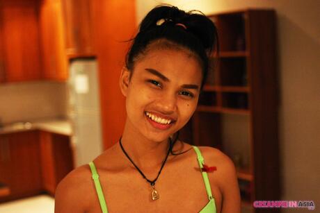 Creampie in Asia: Sexy Asian babe May strips off her sexy bikini and shows her
