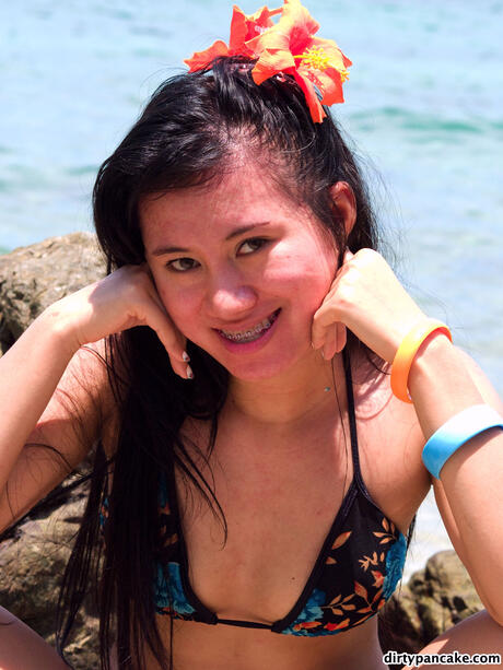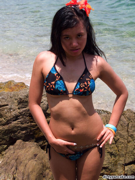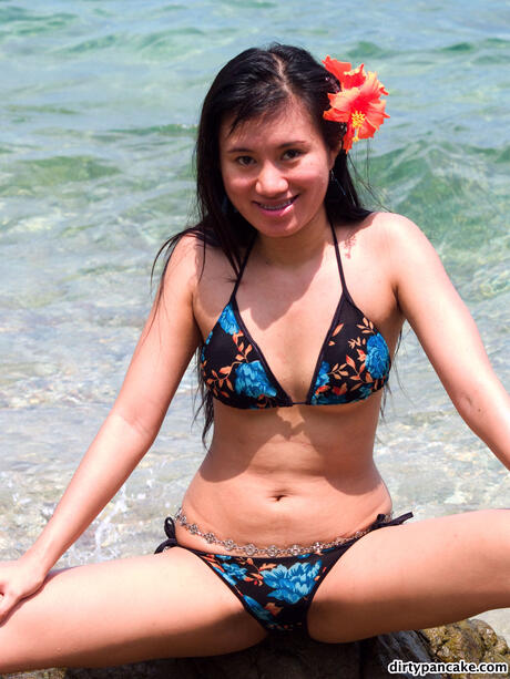 Dirty Pancake: Sexy Asian babe Pat presents her perfect ass and poses in a bikini poolside