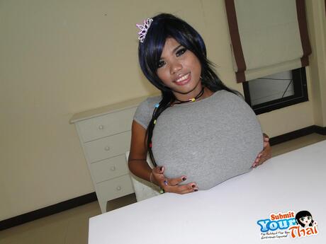 Submit Your Thai: Sexy Asian babe Poy shows her big racks and poses in a hot striptease