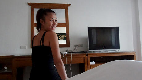 Asian Sex Diary: Sexy Asian babe Tip strips off her black dress and displays her big booty