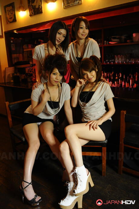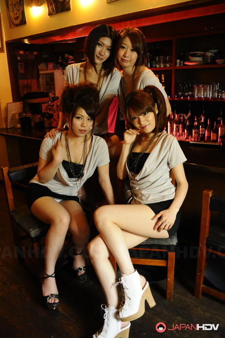Japan HDV: Sexy Asian girls in sexy outfits pose together in a library for a nude shoot
