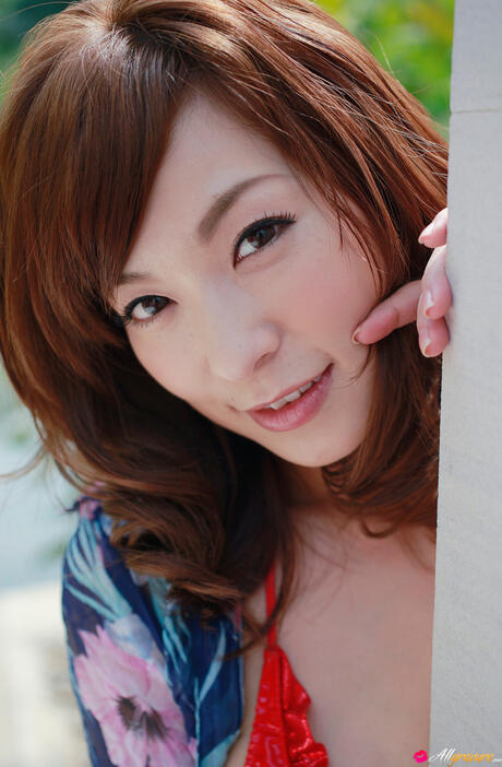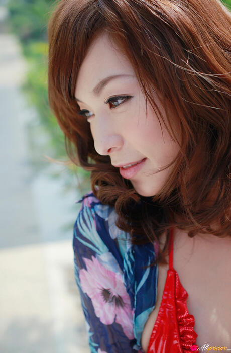 All Gravure: Sexy Asian Kaho Kasumi demonstrates her big ass in a red bikini on the beach