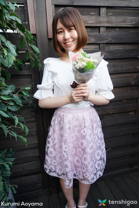 Tenshigao: Sexy Asian maid Kurumi Aoyama strips off her white dress and shows her hot body