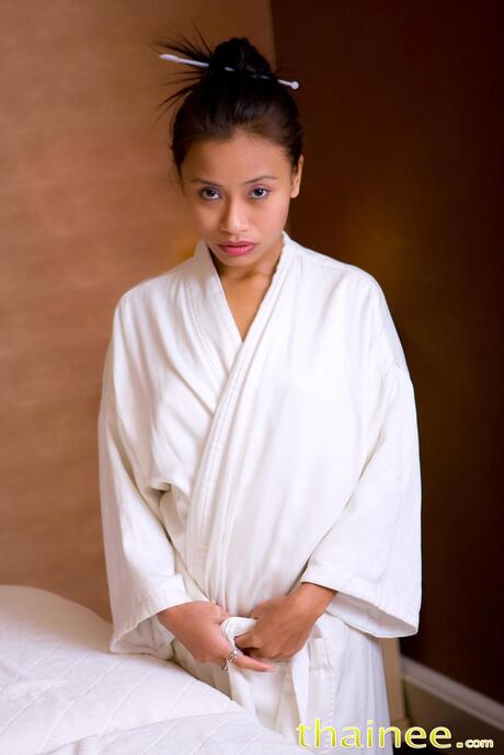 Thainee: Sexy Asian maid Thainee strips and masturbates with a dildo in the bathroom