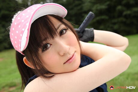 Japan HDV: Sexy Asian Michiru Tsukino strips to her panties and presents her ass outdoors