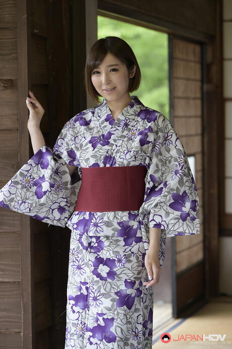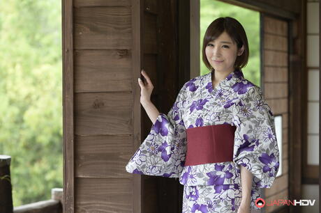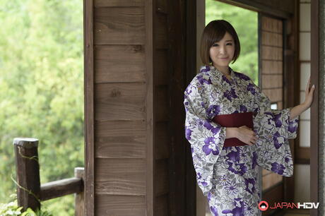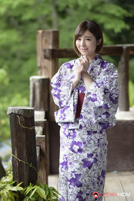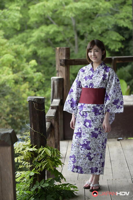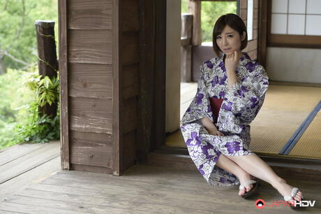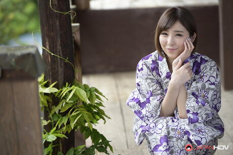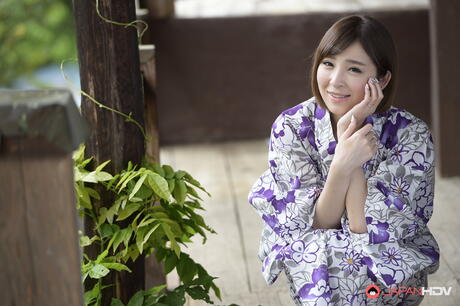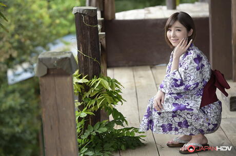 Japan HDV: Sexy Asian mommy Runa Hagawa strips and demonstrates her perfect butt in a garden