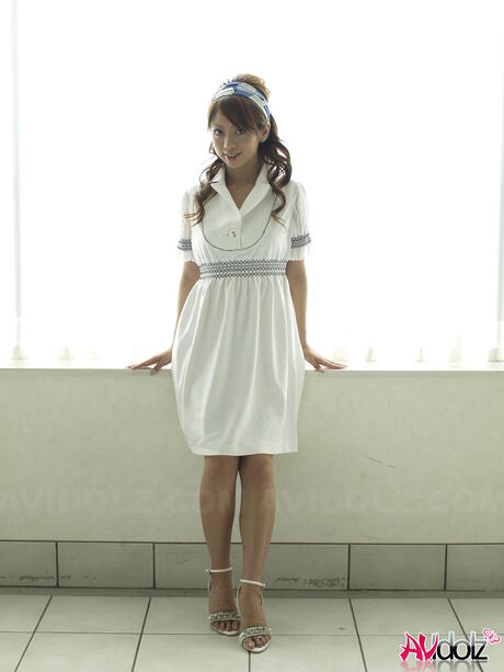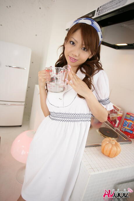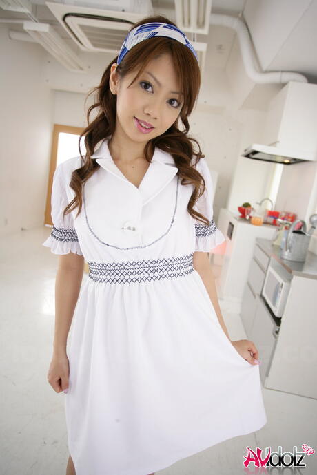 AV Idolz: Sexy Asian nurse Misato Matsu strips to her apron & shows her sexy booty in a kitchen