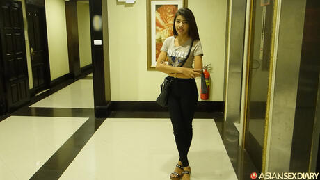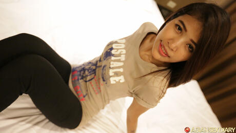 Asian Sex Diary: Sexy Asian Pear shows her pierced pussy and small tits in a solo