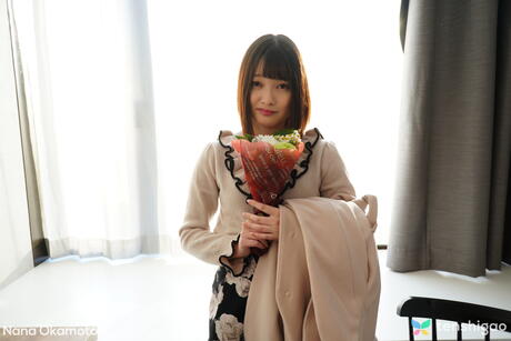 Tenshigao: Sexy Asian secretary Nana Okamoto takes off her work clothes and goes naked