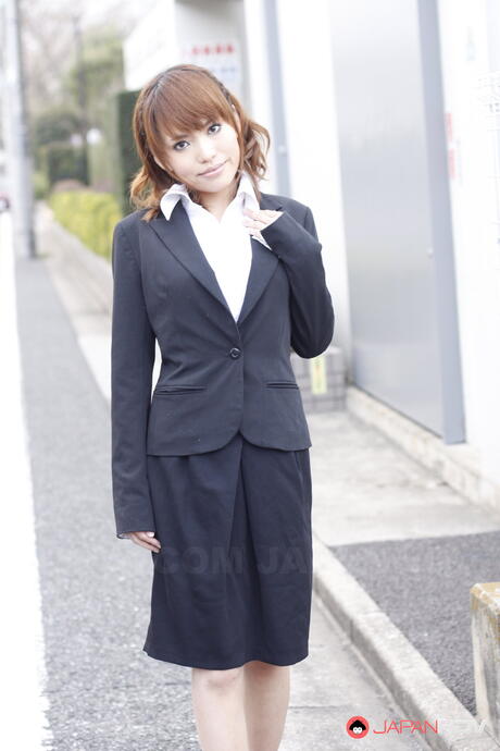 Japan HDV: Sexy Asian secretary Yui Shimizu strips her business suit and poses naked