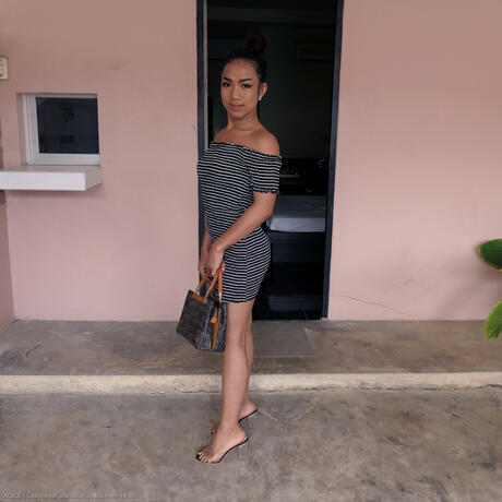 Ladyboy Gold: Sexy Asian shemale Alice 6 strips her dress and shows her big dick