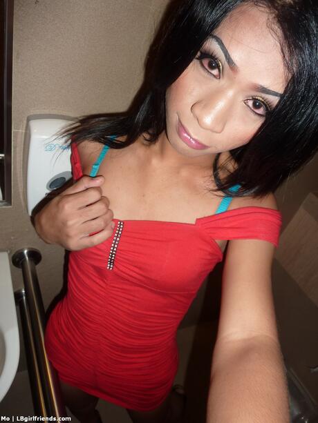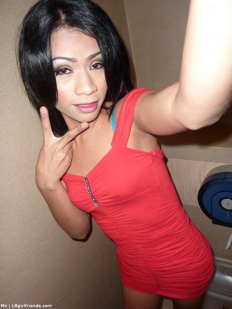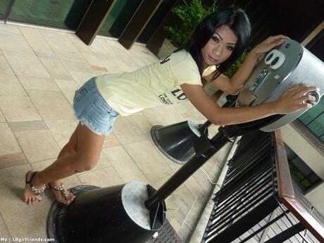 Ladyboy Gold: Sexy Asian shemale Dada strips her denim shorts and shows her big dick