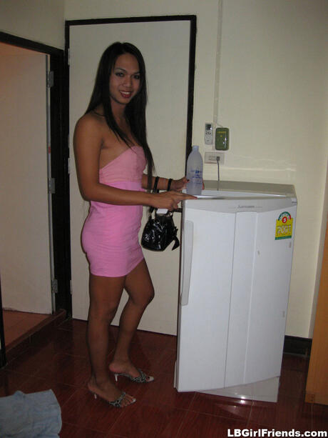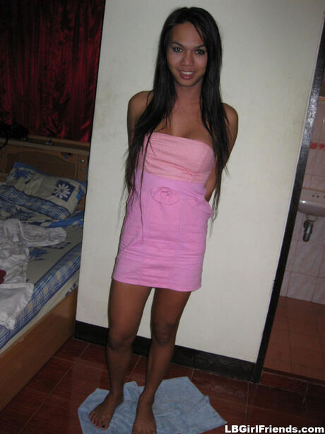 Ladyboy Gold: Sexy Asian shemale Jasmine strips her dress and shows her big tits and dick