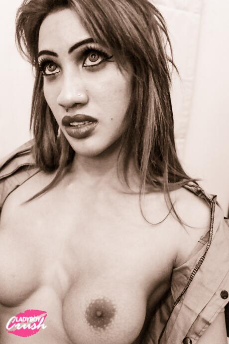 Ladyboy Gold: Sexy Asian shemale Pan 2 shows off her big tits and her big dick