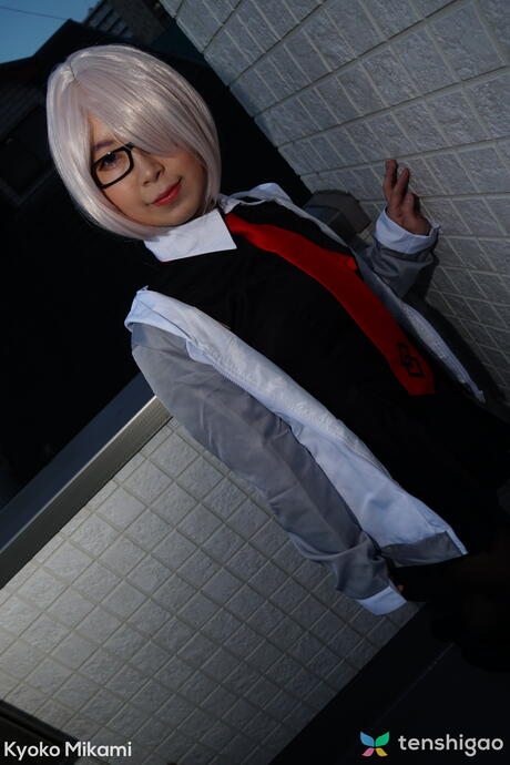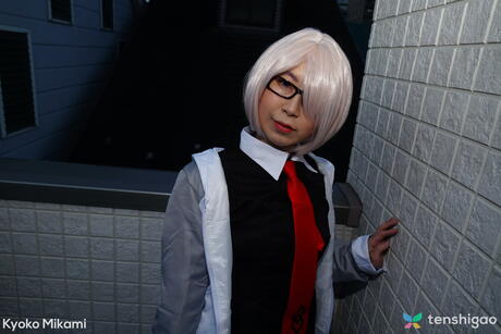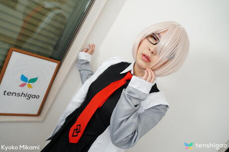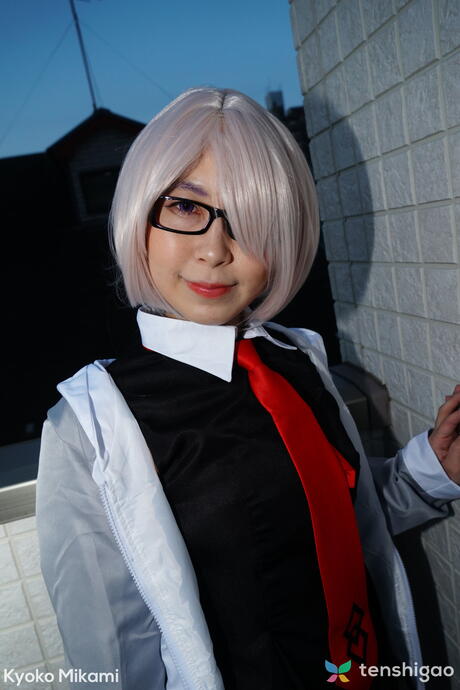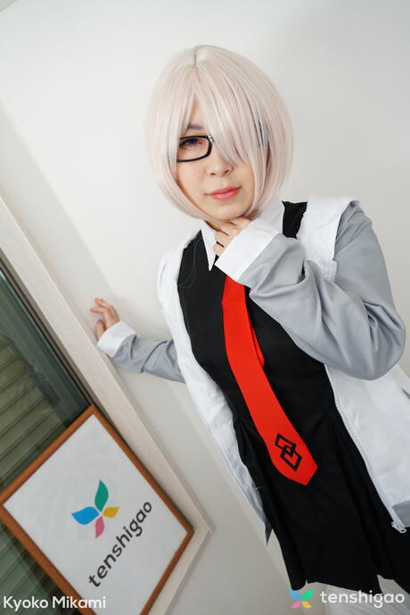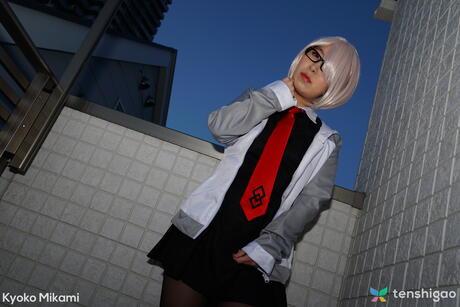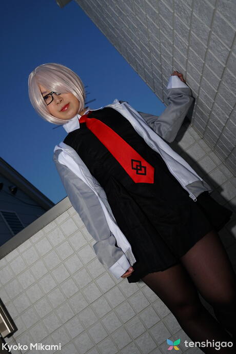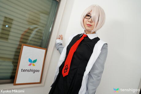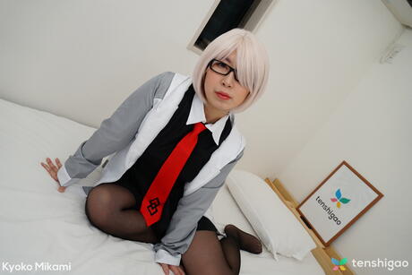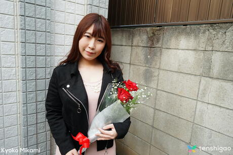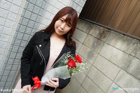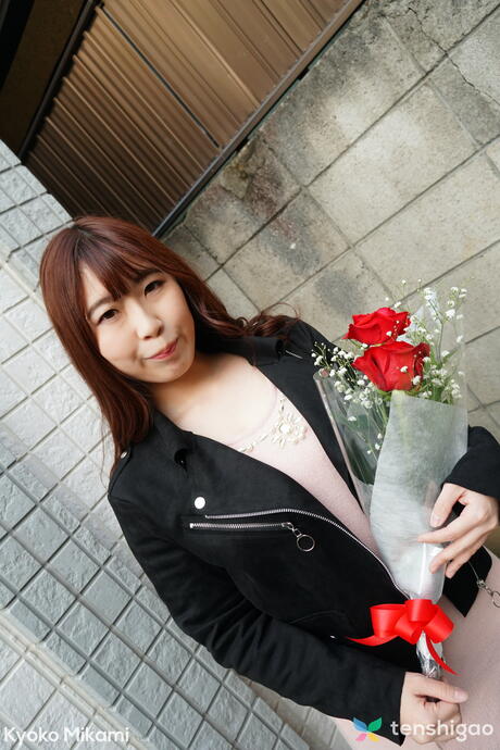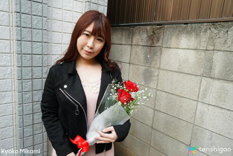 Tenshigao: Sexy blonde Kyoko Mikami in a black dress and high heels posing in a bedroom
