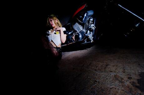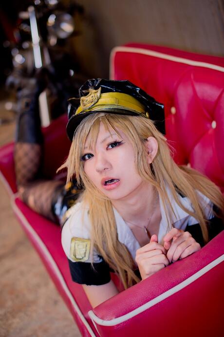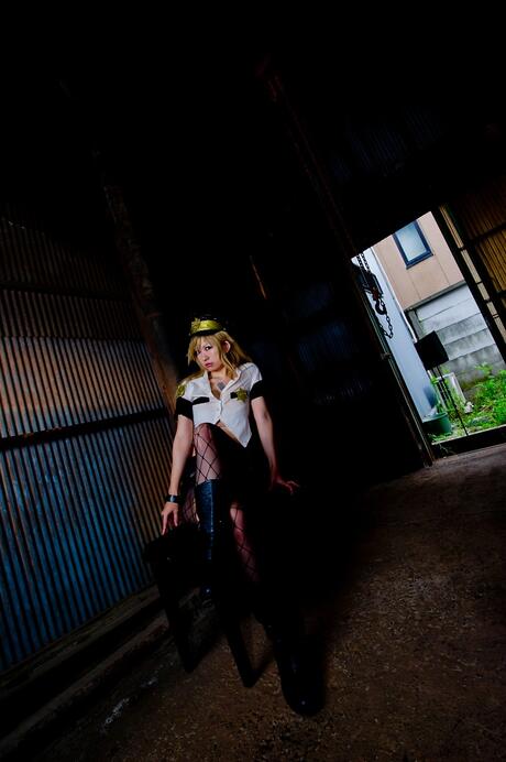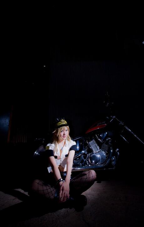 All Gravure: Sexy blonde Michiko shows off her big ass in fishnets & her big juggs in a solo