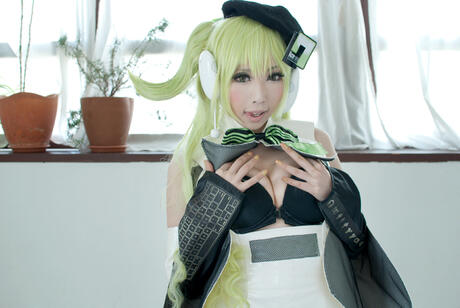 All Gravure: Sexy blonde Momoiro Reku demonstrates her amazing juggs & her ass in a fishnet dress