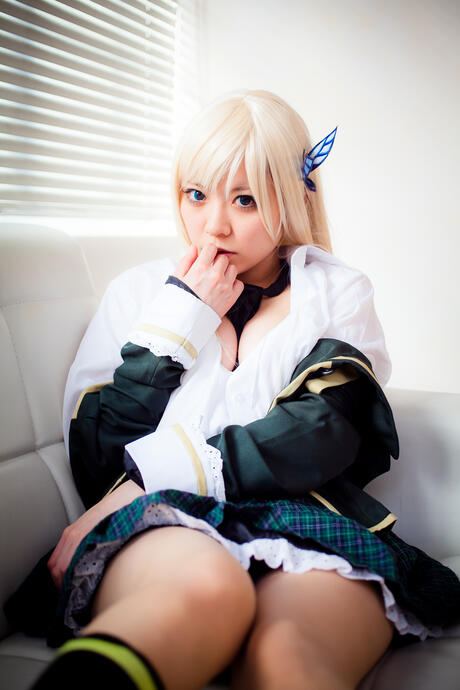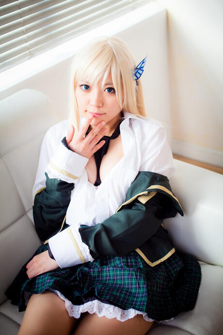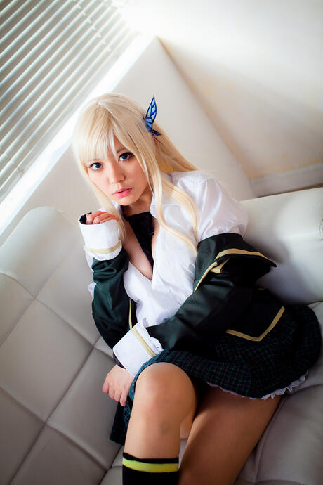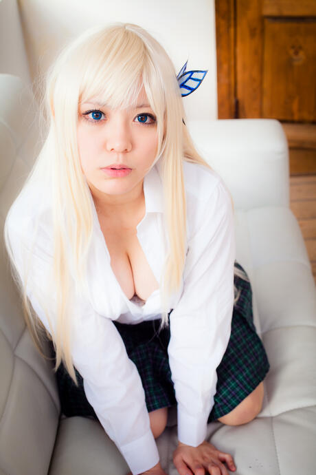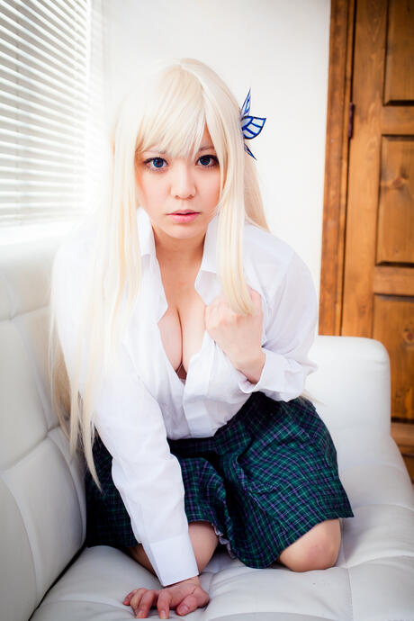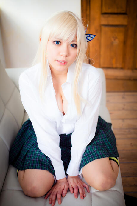 All Gravure: Sexy blonde Yane strips her plaid skirt and shows her perfect booty and tits