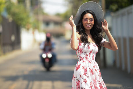 Metart: Sexy brunette Chloe Saat takes off her bikini and highlights her hot body