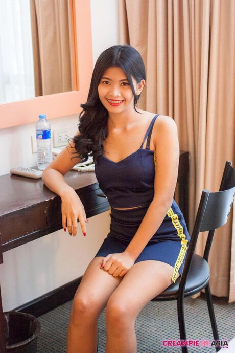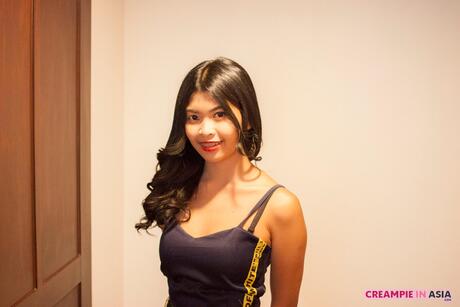 Creampie in Asia: Sexy brunette Chuun takes off her black dress and toys her pussy in a solo
