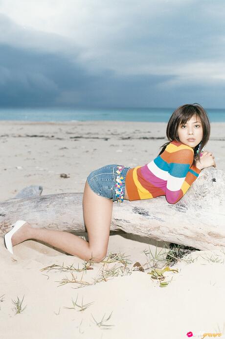All Gravure: Sexy Japanese girl Miho Shiraishi strips and highlights her hot body on the beach