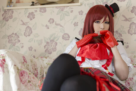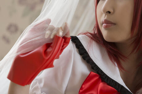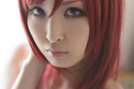 All Gravure: Sexy Japanese redhead Usakichi strips to her pantyhose & shows her ass