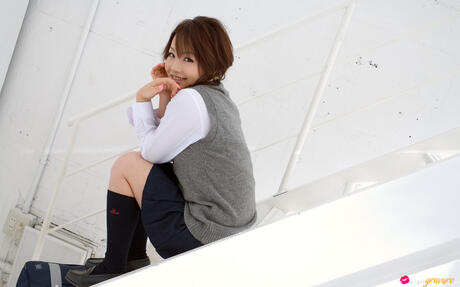 All Gravure: Sexy Japanese schoolgirl Asuka Kimishima strips and presents her hot ass