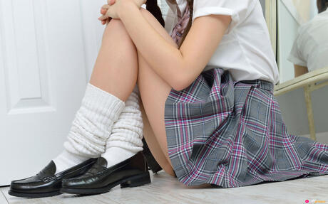 All Gravure: Sexy Japanese schoolgirl Mizuho Shiraishi strips and poses in a solo