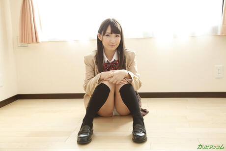 Caribbeancom: Sexy Japanese schoolgirl Rika Anna strips and fucks a big dildo in a solo