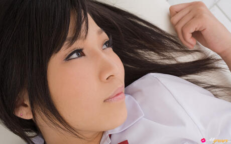 All Gravure: Sexy Japanese schoolgirl Yuri Kodo strips and presents her sexy butt in a solo