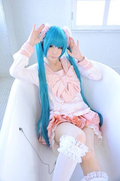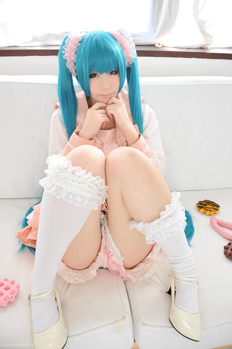 All Gravure: Sexy Japanese teen Haruka strips and poses in her pink dress and socks