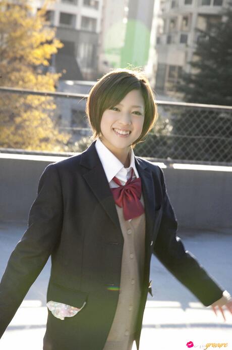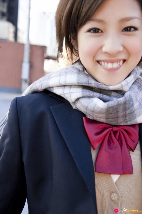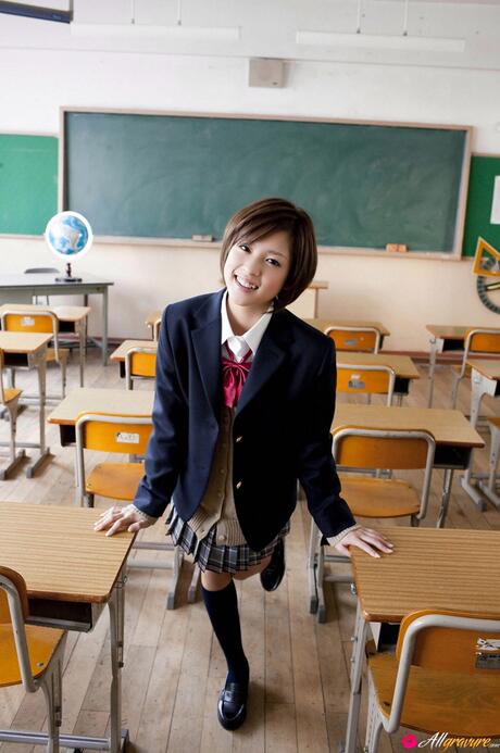 All Gravure: Sexy schoolgirl Miyu Oriyama strips and bares her tiny tits and ass