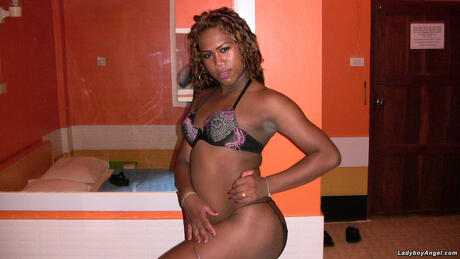 Ladyboy Gold: Sexy shemale Ally strips her bikini and shows her sexy butt and big dick