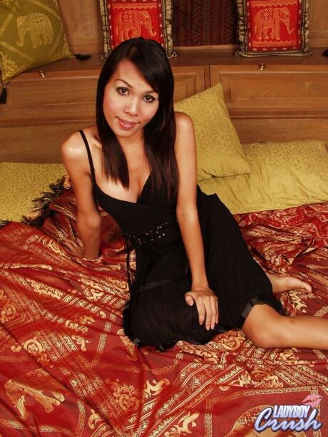 Ladyboy Gold: Sexy shemale Beeer 3 strips her black dress & shows her big tits & dick