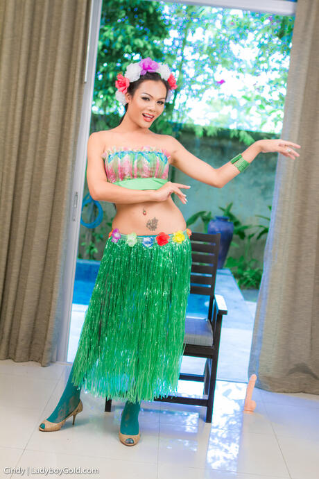 Ladyboy Gold: Sexy shemale Cindy 2 strips her white dress and shows her big dick