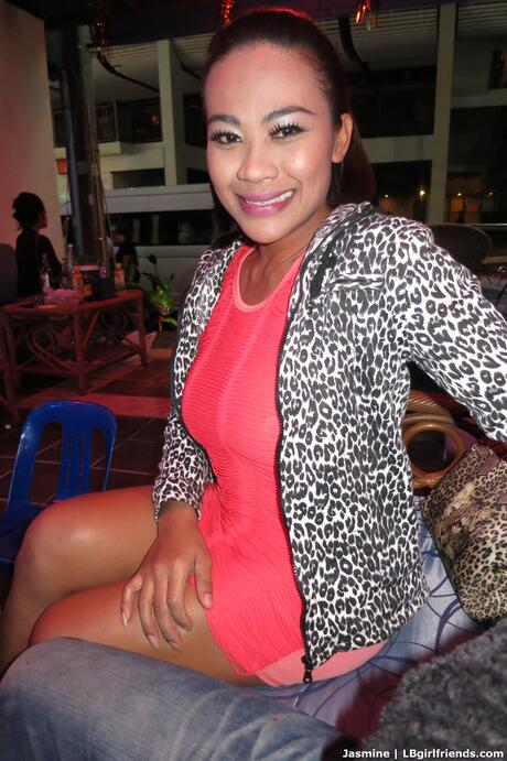 Ladyboy Gold: Sexy shemale Jasmine strips her lingerie & shows her big tits & big dick