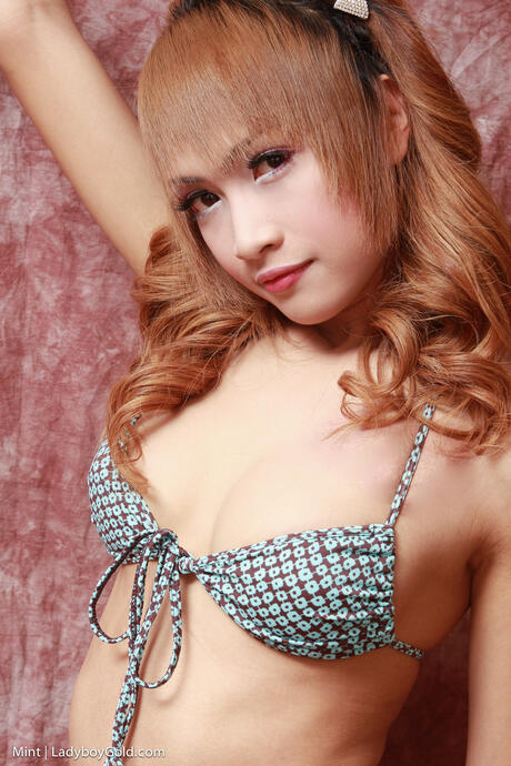 Ladyboy Gold: Sexy shemale Mint 2 strips her lingerie off and masturbates in a solo
