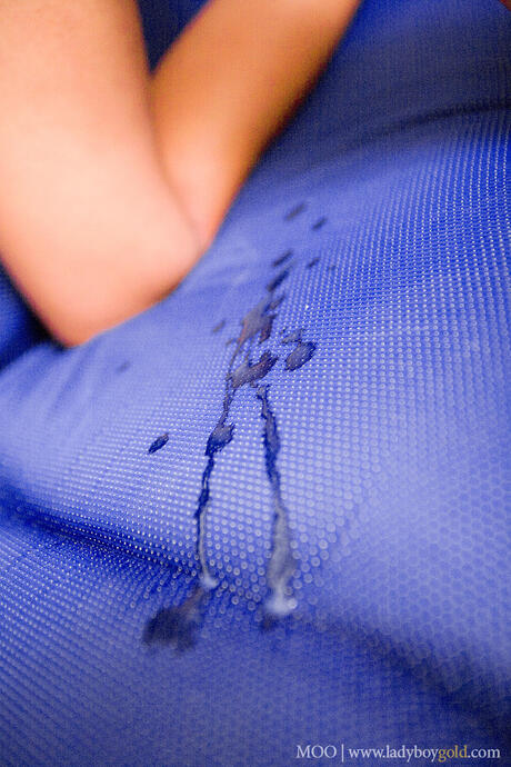 Ladyboy Gold: Sexy shemale Moo 1 toys her ass & strokes her big dick in a solo