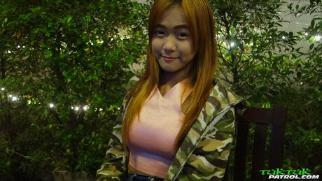 Ladyboy Gold: Sexy shemale Palm strips her schoolgirl outfit & toys her ass in fishnets