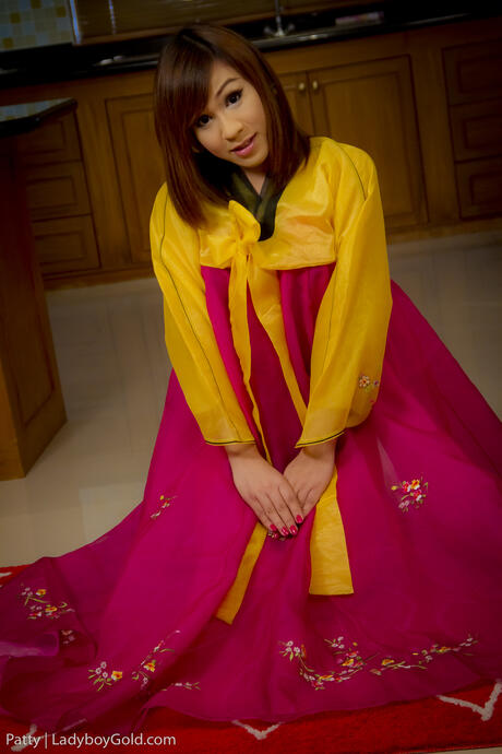 Ladyboy Gold: Sexy shemale Patty 4 strips her dress and shows her big dick and balls