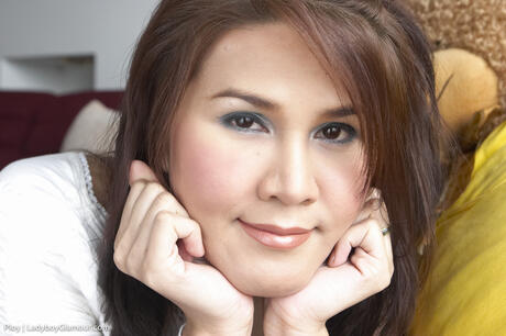 Ladyboy Gold: Sexy shemale Ploy 2 strips her lingerie and shows her big booty and dick